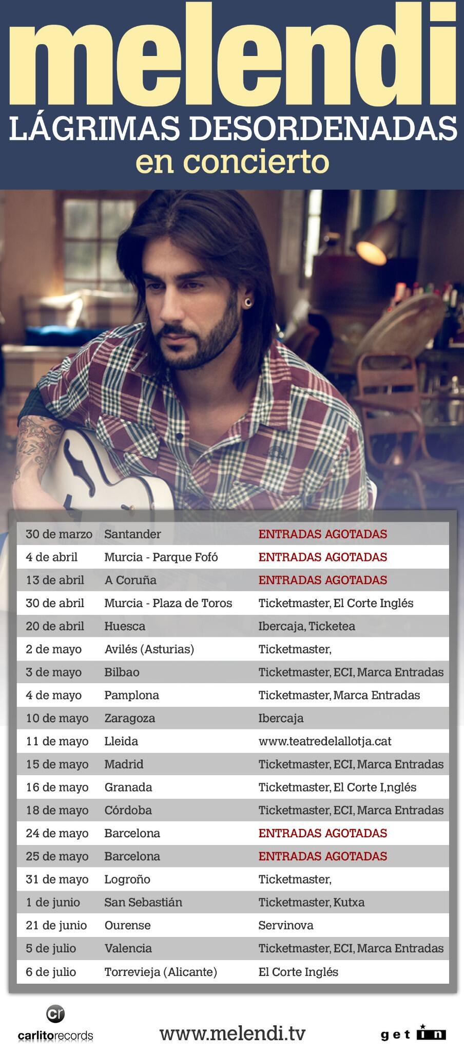 aquí os dejo una imagen para que sepáis que entradas están o no agotadas para la gira por España del álbum Lágrimas desordenadas !!..... Corred, el tiempo pasa y si no os dais prisa se agotaran las entradas, porque vuelann !!!